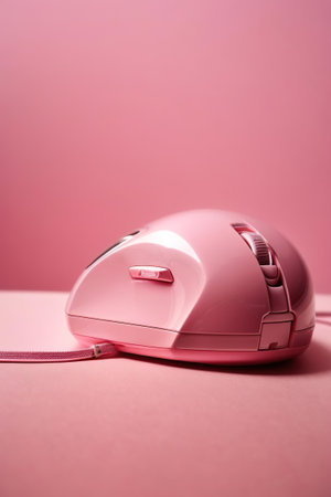 Pink computer mouse on a pink background. minimalist style.
