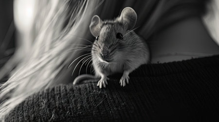 Tiny mouse captured in a charming pose, showing its adorable features and bright eyes.