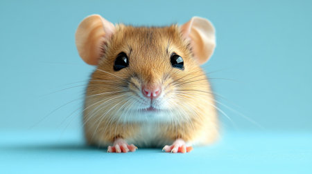 a small mouse, captured in a minimalist color field style, stands and gazes up at the camera. the light amber and cyan hues create a serene atmosphere, while the minimalist background enhances the focus on the mouse. this playful and whimsical depiction of an animal showcases the artistry of tabletop photography and the use of ray tracing techniques. ai generated