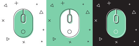 Set Computer mouse icon isolated on white and green, black background. Optical with wheel symbol. Vector.