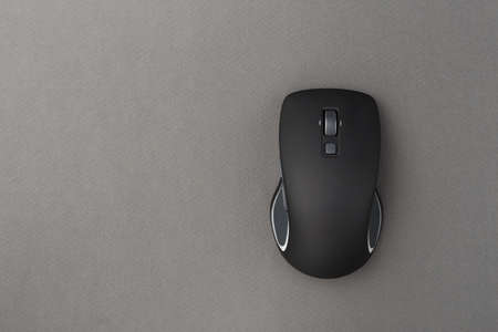 black computer mouse on a gray background, top view