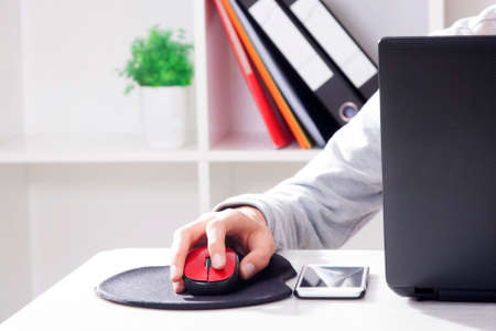 hand on computer mouse in closeup