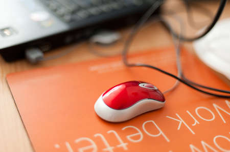 Computer new red mouse, a perfect working tool at the office