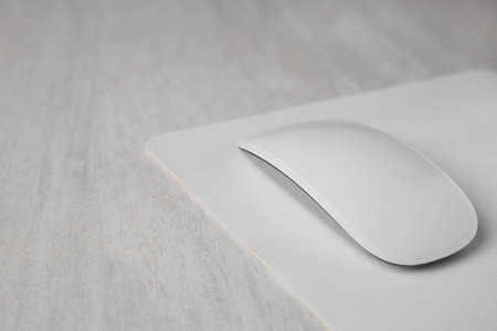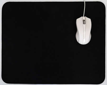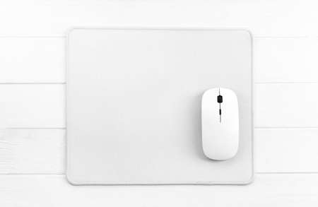 Computer mouse on white mouse pad, top view