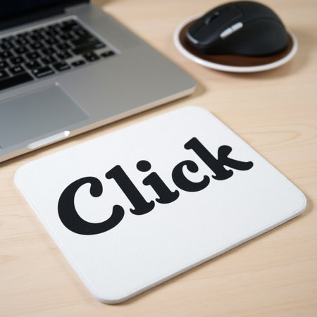 Techinspired Mouse Pad with Click Text Beside Laptop