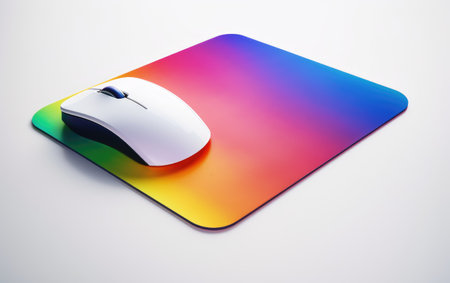 This image features a modern computer mouse placed on a white mouse pad, highlighting ergonomic design and high-quality material. Ideal for gaming or office environments.