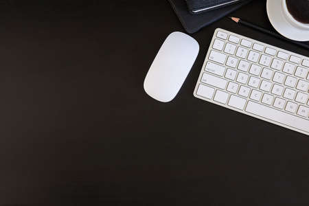 Computer keyboard and mouse on a black background. Copy space