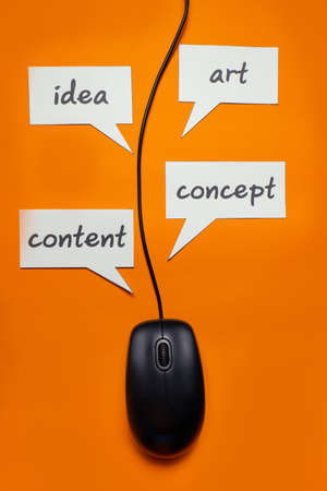 Use a wired mouse labeled Concept, Idea, Art, Content.