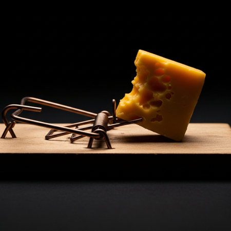 A mousetrap with a piece of cheese in the form of bait. Free cheese as a catch, followed by a hidden trap and payback.