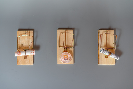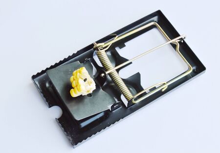Drugs trapped in a mousetrap. Concept of drug addiction. Copy paste.