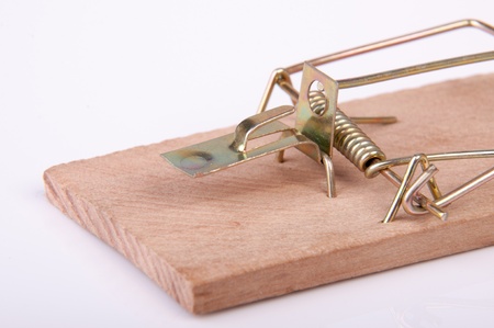 Wooden mousetrap on a white background. Mousetrap without a bait