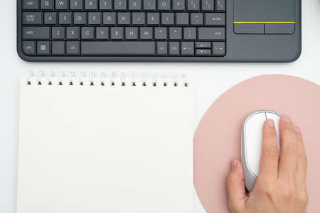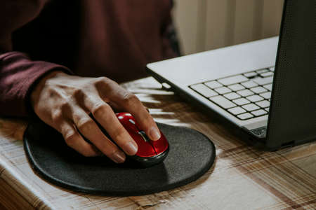 The hand is caught the mouse and is working in the office.And the fingers are click and press working is the business and technology.are working at the Office.