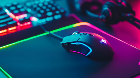 Explore the vibrant gaming setup featuring a neon-lit mouse and keyboard for an immersive experience.