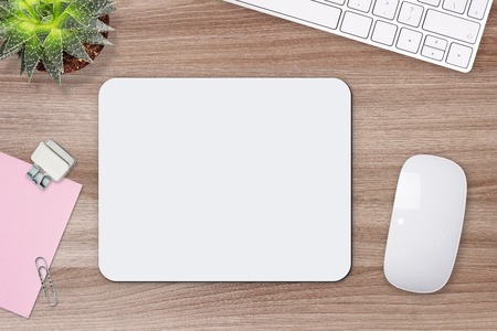 A high-quality mockup of a mousepad with design isolated on white background top view.