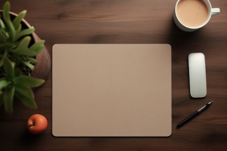 desk mat on work table mockup, side view. Generative AI.