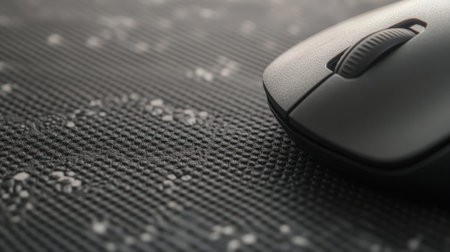 A close-up image of a computer mouse resting on a textured surface, showcasing the details of technology and workspace design for modern digital environments.