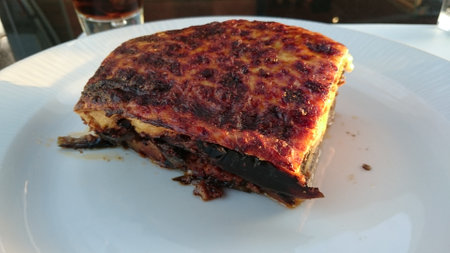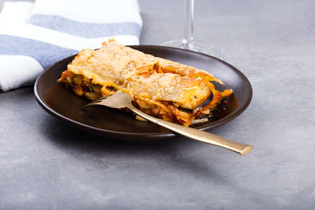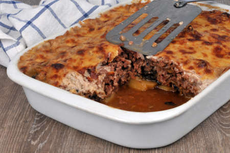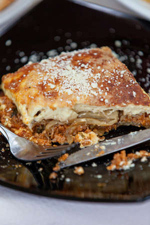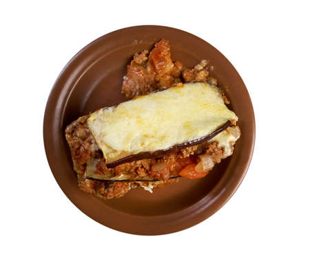Greek cuisine. Moussaka - casserole of minced meat and vegetables