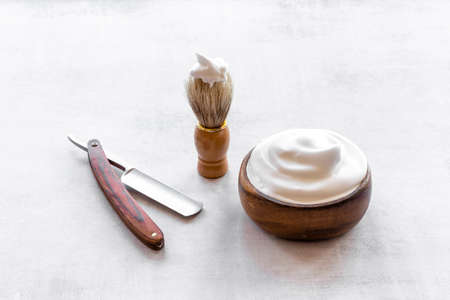 Shaving razor and foam in bowl - barber tools equipment