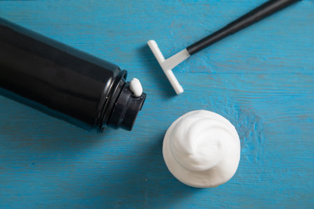 Razor blade and shaving foam. Care