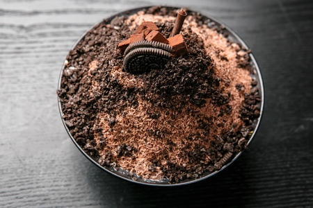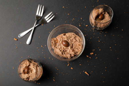Classic french chocolate mousse on brown background