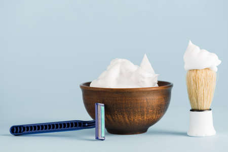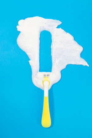 Shaving foam on the blue background. Care