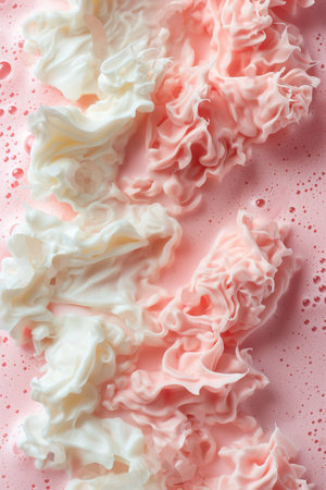 Abstract Pink and White Cream Swirls with Water Droplets.