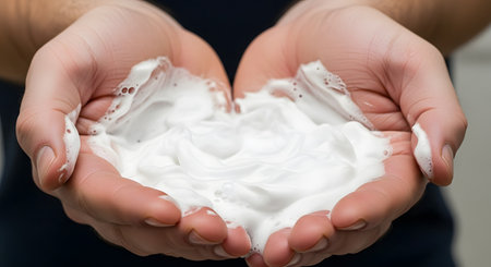 Hand with white bubble foam.