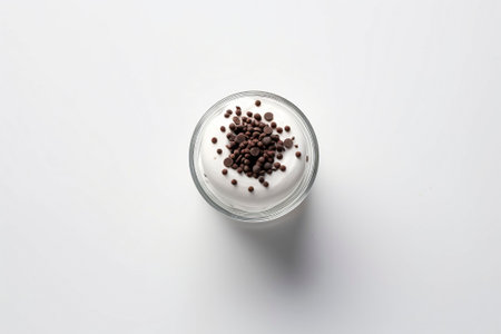 Indulge in the velvety delight of a creamy chocolate pudding against a clean white backdrop