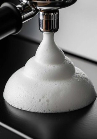 A minimalist composition of white foam spread evenly on a black background