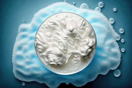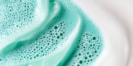 Abstract texture of pearlescent gel with teal bubbles, ideal for background, AI generated