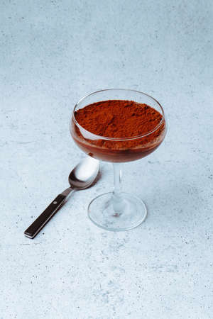 A beautiful dessert, tiramisu in a glass,