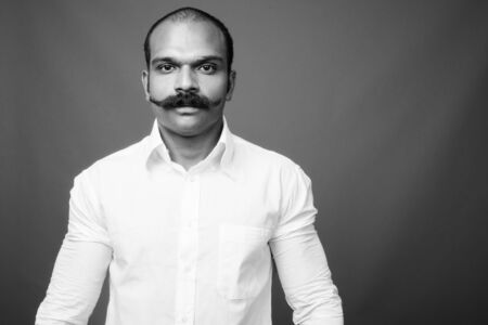 young bald man with beard and mustache in a white shirt closeup, portrait,