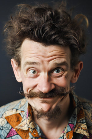 Portrait of a middle-aged man with a large mustache on an abstract background, AI Generated