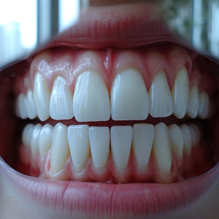 Close-up of a perfect smile examined by a dentist, highlighting healthy white teeth and gums