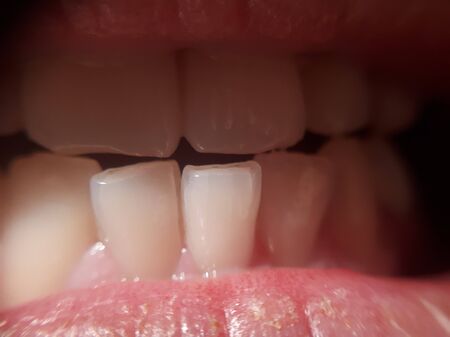 Close-up of Human Teeth, Showing Slight Discoloration, Dental Health and Hygiene Concept
