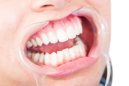 Dental mouth spreader, before teeth whitening Teeth woman at the reception dentist to get perfect smile, make your teeth their whitest. Dental appointment.