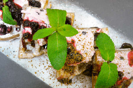 Vienna waffles with black currant and curd cream