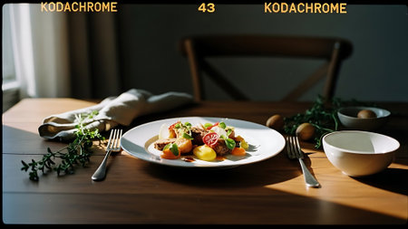 Close-up illustration of food photography, showcasing plating, lighting, and culinary artistry. Ideal for discussions on capturing food images, presentation, and culinary aesthetics.