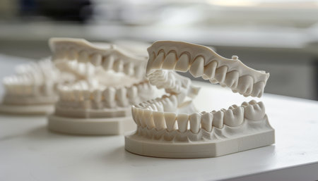 Detailed view of a dental model displaying teeth alignment