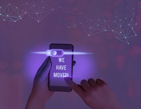 Writing note showing We Have Moved. Business concept for To go from one residence or location to another Relocate