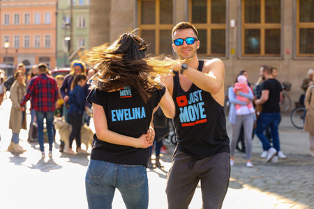Wroclaw, Poland - April 2022: Rueda de Casino open event at market square