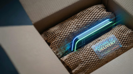 A drop shipping store box clock logistic concept. drop shipping store box clock logistic concept neon package eco future delivery vision