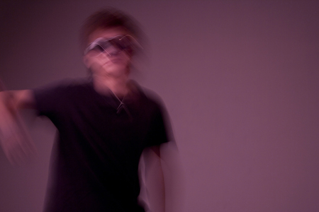 Blurred movement effect man in motion.Portrait of a young man