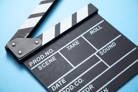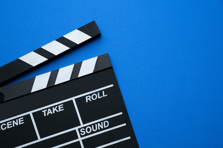 Movie clapper on the blue background.