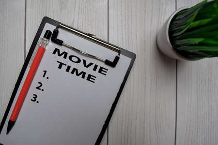 Movie Time and List Number write on a paperwork isolated on office desk.