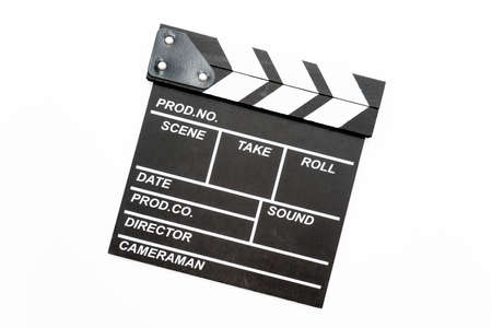 Film slate close up on white background