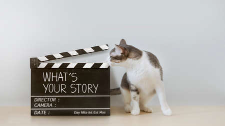 funny cats are looking film slate, Film industry, movie, and Storytelling concept