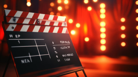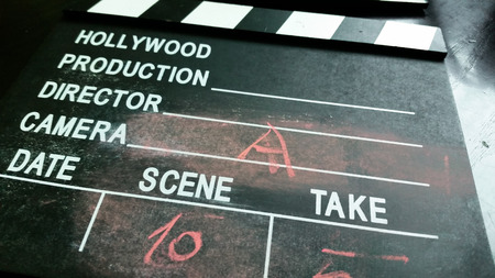 Movie clapper board closeup. Filmmaking production concept.