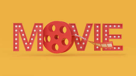 red 3d movie type-text letters roll film yellow background 3d rendering movie,cinema,entertainment concept