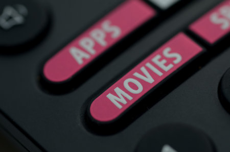 Close-Up of Remote Control Featuring Pink APPS and MOVIES Buttons